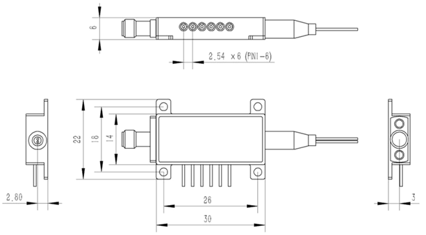 Волоконно-оптический модулятор на тонкопленочном ниобате лития (TLNM) отличается низким полуволновым напряжением до 3,5 В и широкой полосой модуляции до 40 ГГц, обеспечивая превосходную эффективность и производительность по сравнению с традиционными модуляторами из ниобата лития. Использование технологии тонкопленочного LiNbO₃ позволило уменьшить размеры волноводов и повысить эффективность преобразования радиочастотного сигнала в оптический. Встроенный блок управления смещением с микронагревателем и фотодетектором обеспечивает стабильное оптическое смещение благодаря усовершенствованной схеме обратной связи. Высокоскоростная модуляция реализована через SMA-разъем, управление смещением осуществляется через контакты, а дополнительный автоматический контроллер смещения обеспечивает повышенную стабильность. Возможна разработка индивидуальных решений под конкретные требования заказчика.