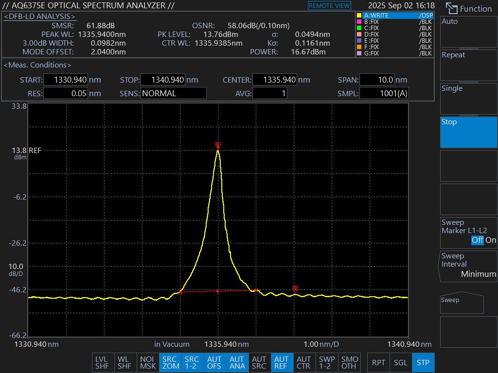 - Центральная длина волны 1336 нм.