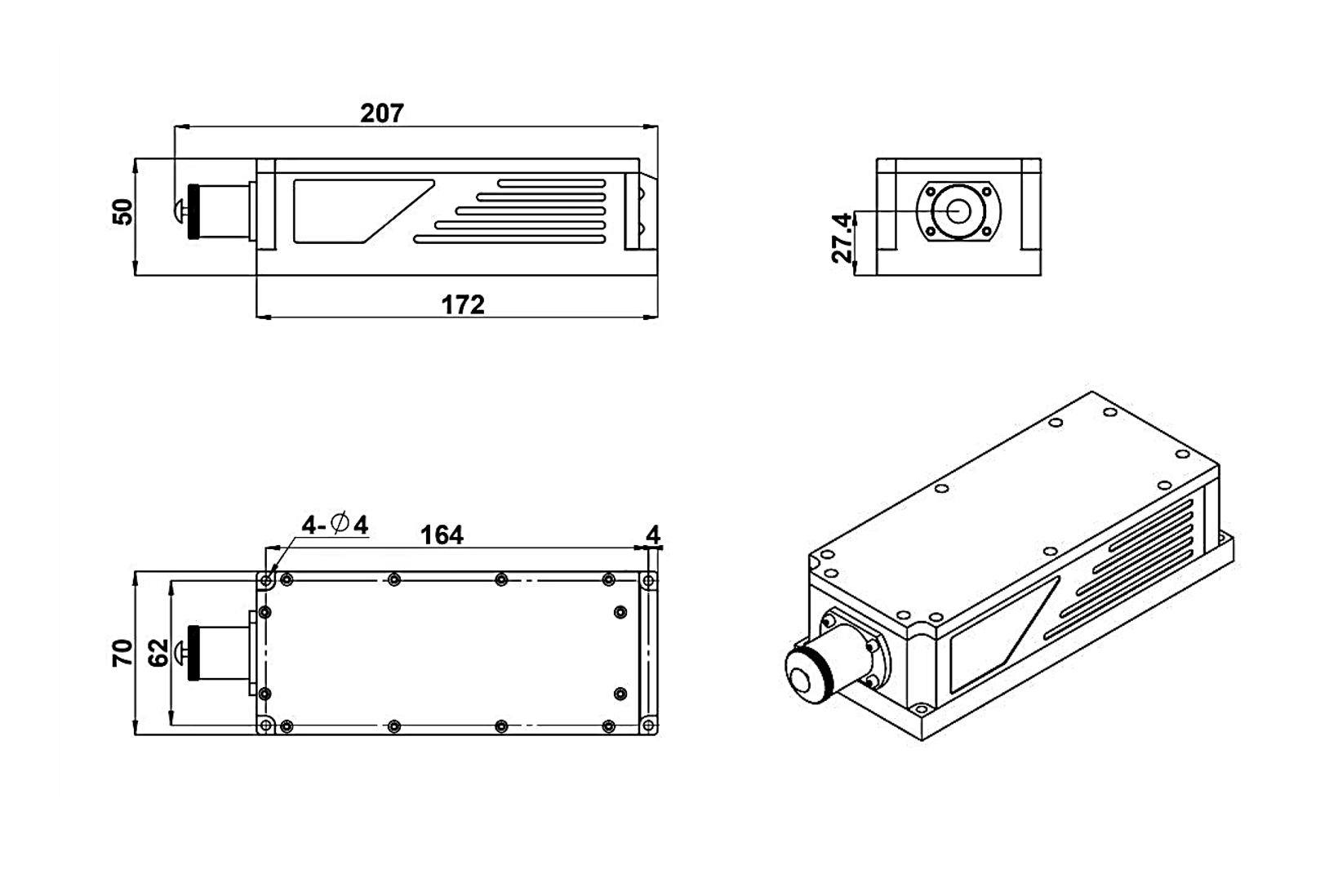 - SSP-SLM-721-FN: длина волны 721 ± 1 нм, выходная мощность 1 - 300 мВт.