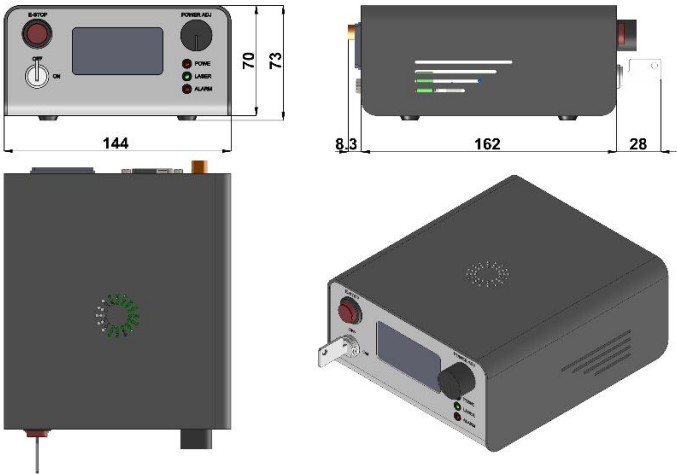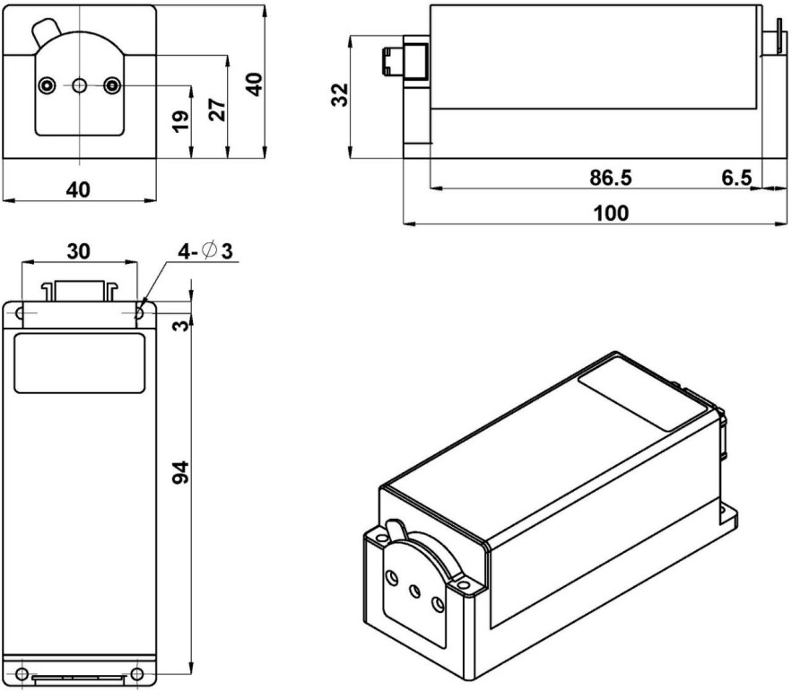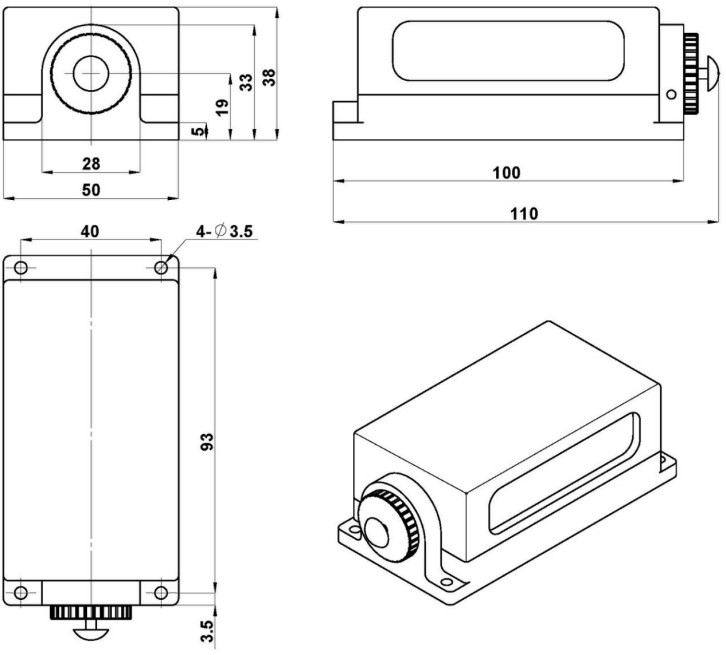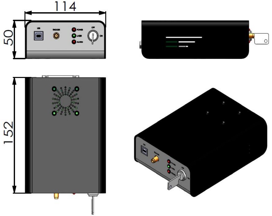- Диаметр пучка на выходе (по уровню 1/e2): ≤ 1 мм.