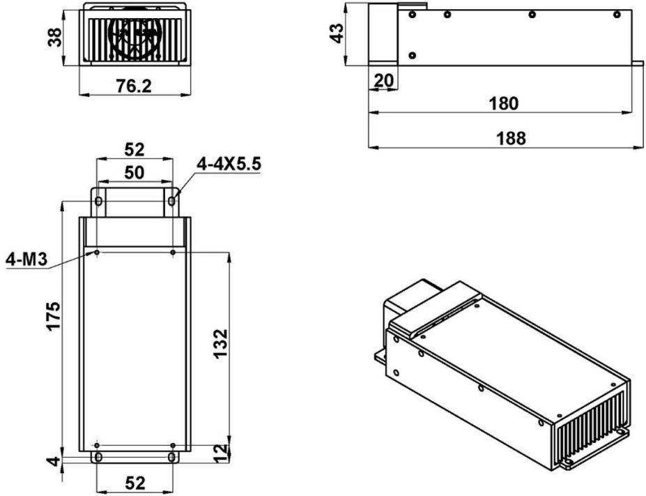 - Расходимость пучка, полный угол: ≤ 1,5 мрад.
