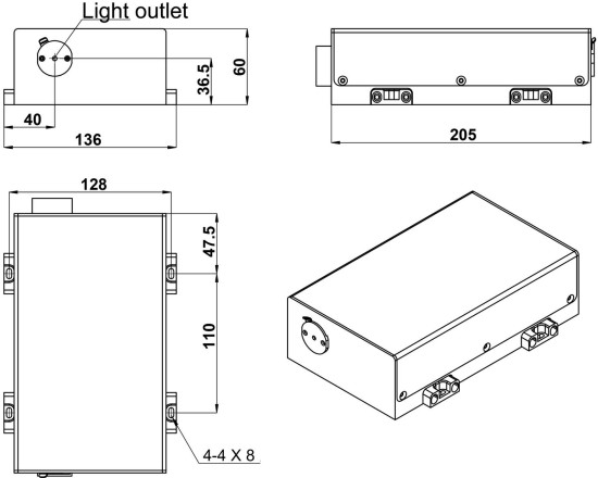 - Расходимость пучка, полный угол: ≤ 3,0 мрад.