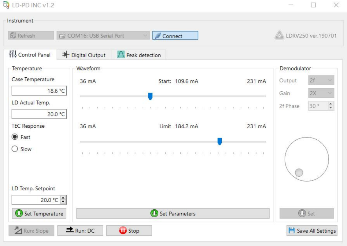 Встроенный опорный источник характеризуется экстремально низким уровнем шума и обеспечивает 16-битную точность управления. Все параметры тока и температуры могут быть сохранены в энергонезависимой памяти модуля, что позволяет запускать лазер с заданными характеристиками по внешнему триггерному сигналу. Данное решение представляет собой готовый источник лазерного излучения с функцией plug-and-play и исключительно высокой стабильностью параметров.