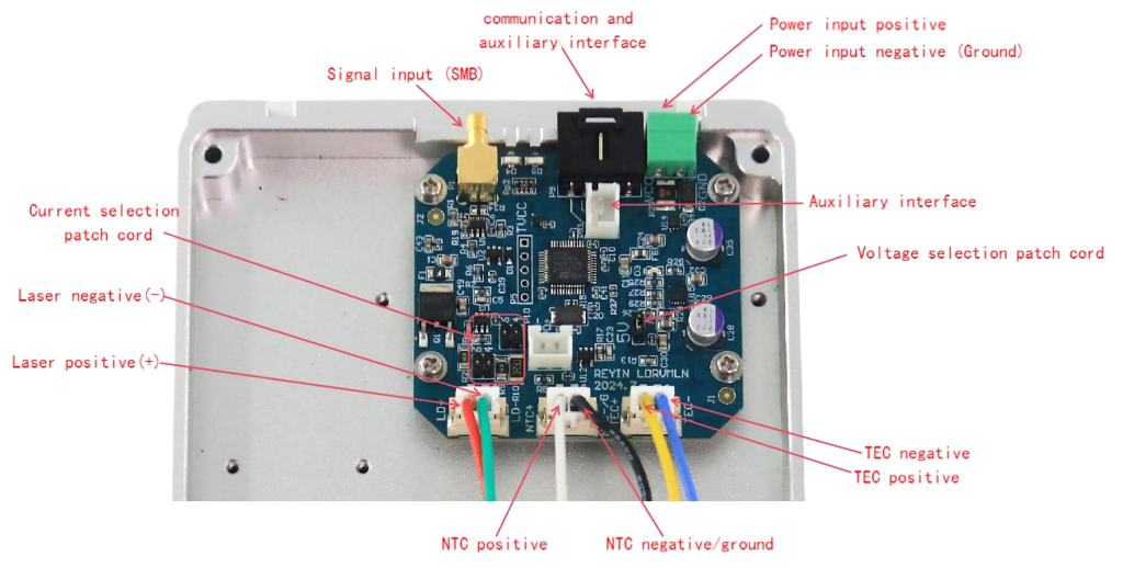 Модуль LDRVMLN представляет собой драйвер тока и контроллер температуры для полупроводниковых лазерных диодов в корпусе типа "бабочка". Основные функции модуля включают: точный контроль внутренней температуры лазера, генерацию стабильного постоянного тока для накачки и преобразование внешних аналоговых сигналов в ток управления. Модуль поддерживает три переключаемых диапазона максимального выходного тока, что позволяет работать с лазерами различной мощности (выбор осуществляется с помощью перемычек на печатной плате).