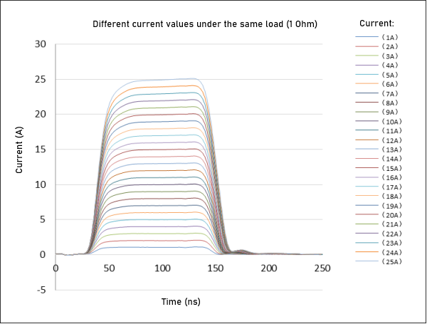 - Поддержка мониторинга формы выходного импульса наносекундного тока.