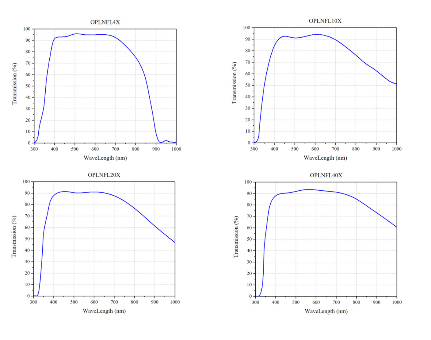 OPLNFL производства Olympus представляют собой полуапохроматические объективы с коррекцией на бесконечность и плоским полем, предназначенные для широкого спектра исследовательских задач. Конструкция объективов на основе флюорита (CaF₂) обеспечивает превосходную коррекцию оптических аберраций в расширенном спектральном диапазоне от ультрафиолетового до ближнего инфракрасного излучения.