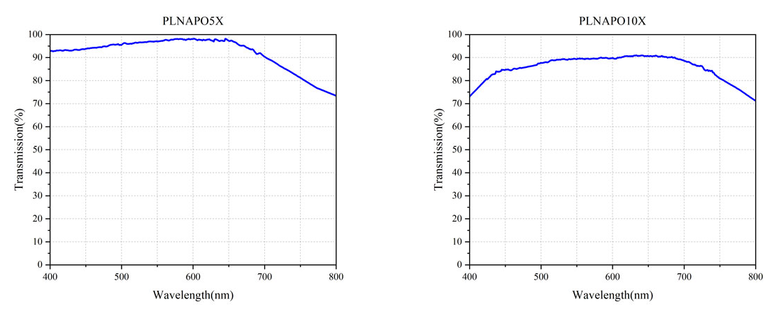 Объективы серии PLNAPO представляют собой апохроматические оптические компоненты, разработанные для микроскопии в видимом диапазоне спектра. Конструкция объективов обеспечивает комплексную коррекцию хроматических аберраций для трех основных спектральных линий, а также устранение кривизны поля и астигматизма, что гарантирует получение высококонтрастных изображений с равномерной резкостью по всему полю зрения.