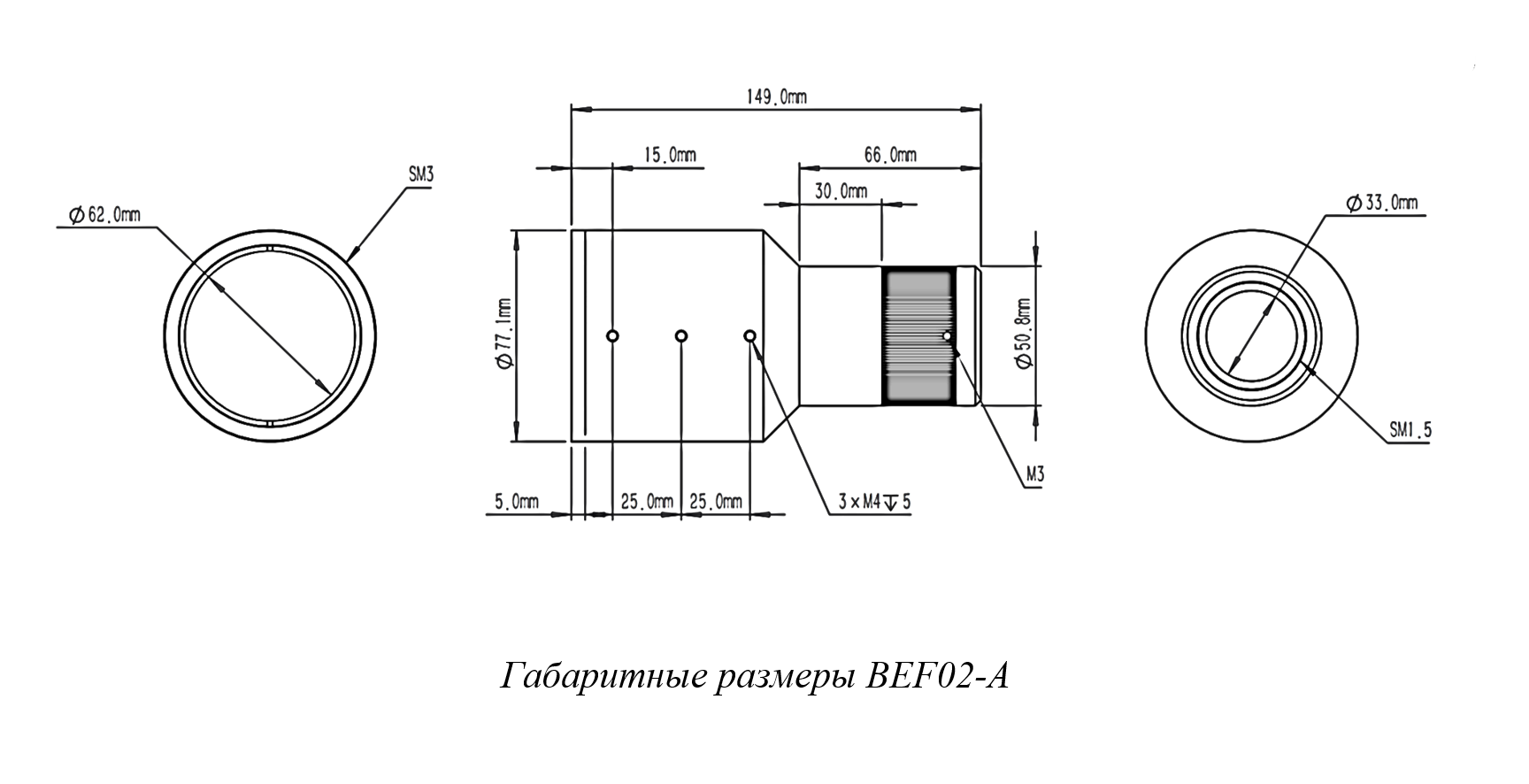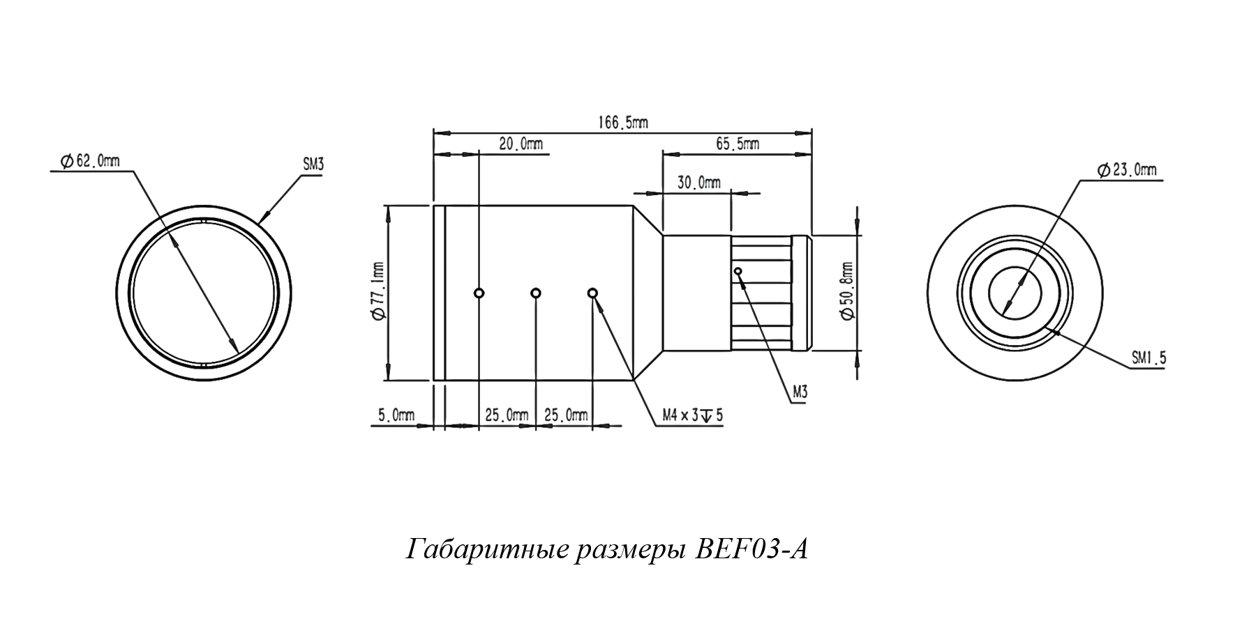 Корпус устройства из анодированного алюминия 6061-T6 имеет несколько резьбовых отверстий M4 для монтажа. Входной и выходной порты оснащены стандартной резьбой SM1.5 (внутренняя) и SM3 (наружная) соответственно, что обеспечивает полную совместимость с другими компонентами. Серия BEF предлагает широкий выбор, представленный тремя линейками с оптимизированными покрытиями для видимого (400-700 нм), ближнего ИК (650-1100 нм) и телекоммуникационного (1000-1650 нм) диапазонов с различными коэффициентами увеличения.