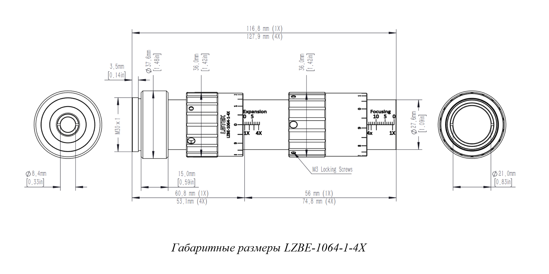 | LZBE-1064-2-10X | 1064 | 2X-10X | 3-8 | Ø9,3 | 173,8 | 1 |