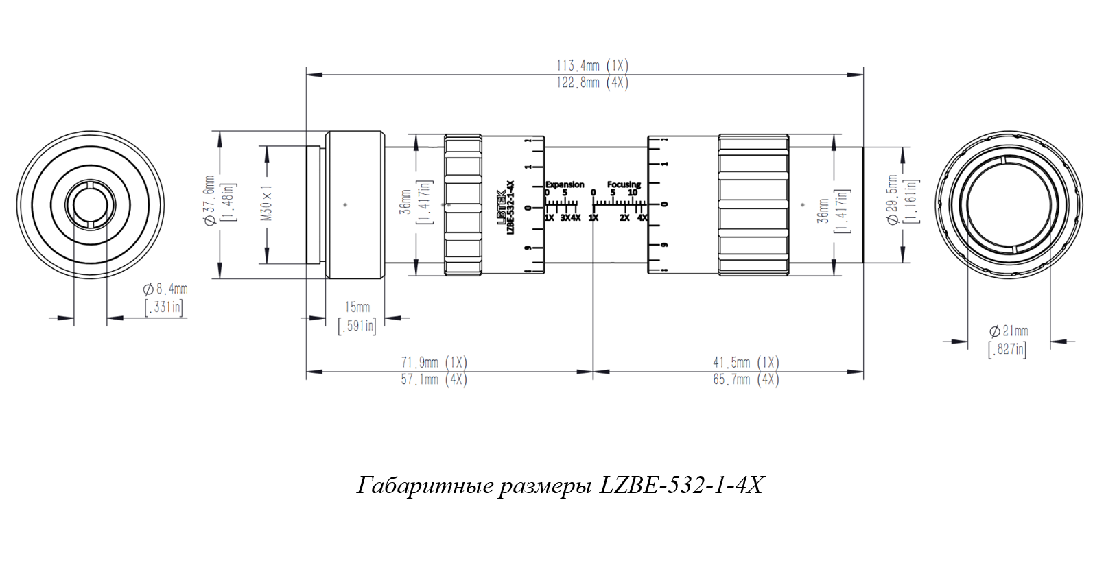 | LZBE-532-2-10X | 532 | 2X-10X | 3-8 | Ø9,3 | 171,4 | 0,5 |