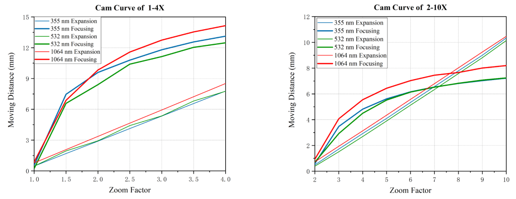 Система состоит из трех групп линз, изготовленных из ультрафиолетового плавленого кварца (UVFS), обеспечивающего высокий порог лазерного повреждения. Относительное перемещение первой и второй групп линз изменяет коэффициент увеличения системы, в то время как перемещение второй и третьей групп регулирует расходимость выходного пучка. Механический корпус оснащен четкими метками, соответствующими различным коэффициентам увеличения. Для получения коллимированного выходного пучка достаточно совместить соответствующие метки на входном и выходном кольцах.