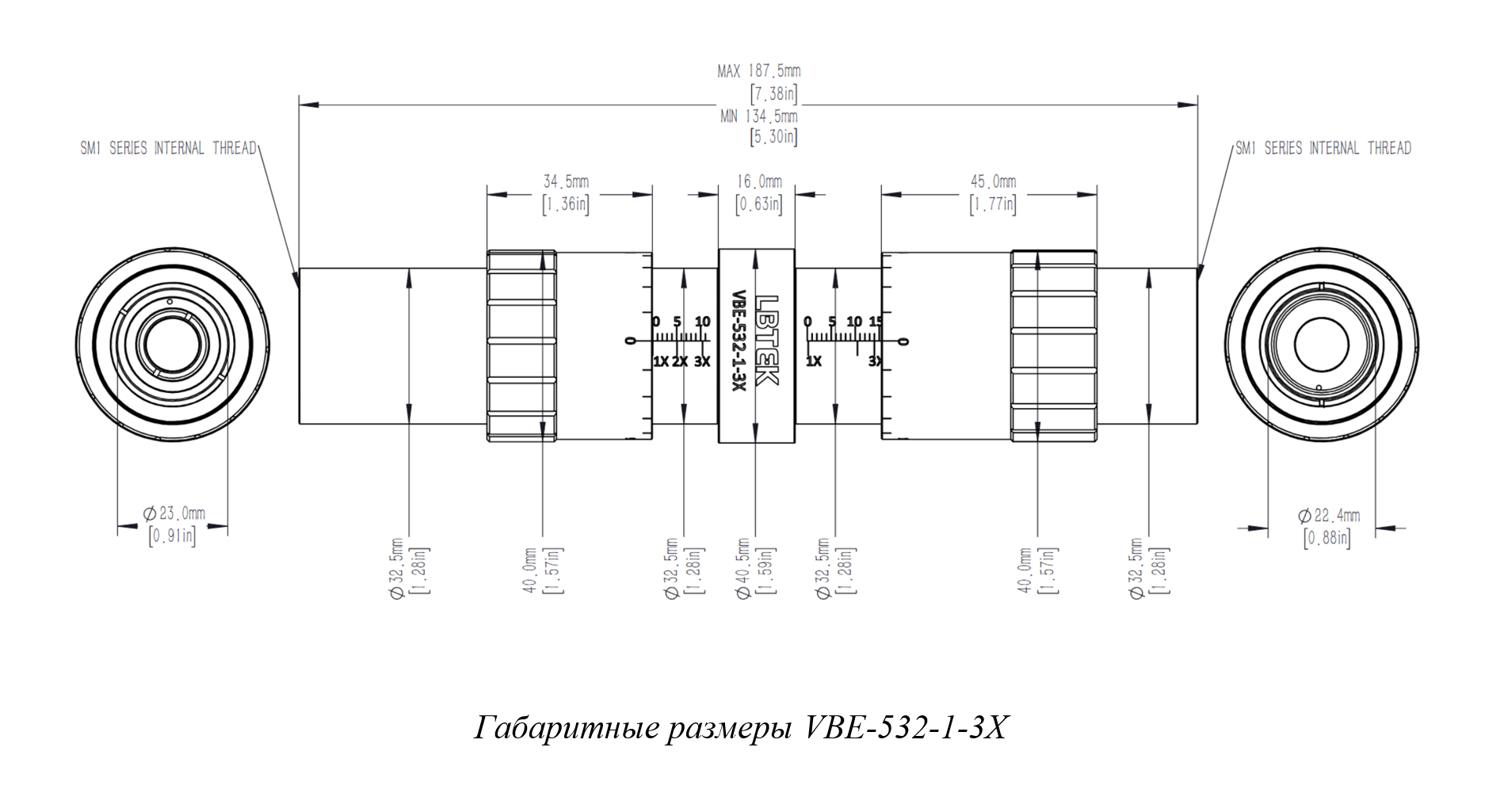 Расширители пучка LBTEK серии VBE представляют собой оптические системы, предназначенные для плавного изменения диаметра и расходимости коллимированного лазерного пучка. В отличие от расширителей с фиксированным увеличением, модели VBE позволяют динамически регулировать коэффициент увеличения в пределах одного из трех диапазонов: 1X-3X, 1X-4X или 2X-10X.