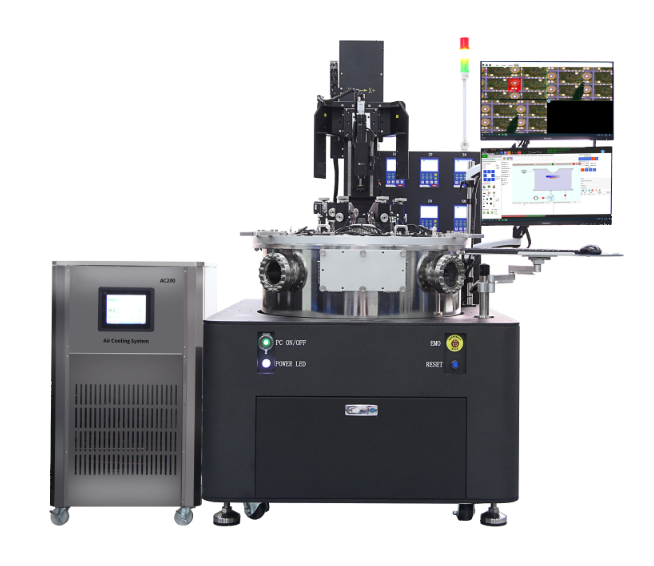 Полуавтоматическая вакуумная зондовая станция CGX-серии представляет собой решение для электрических измерений в экстремальных условиях. Оборудование обеспечивает работу в широком температурном диапазоне от 10K до 450K с использованием криогенных хладагентов (жидкий гелий или азот) в сочетании с высоким вакуумом до 5×10⁻⁴ Па. Конструкция станции включает пятиосевую систему позиционирования с точностью ±1 мкм и скоростью перемещения до 40 мм/с, что позволяет проводить тестирование полупроводниковых пластин диаметром до 8 дюймов.