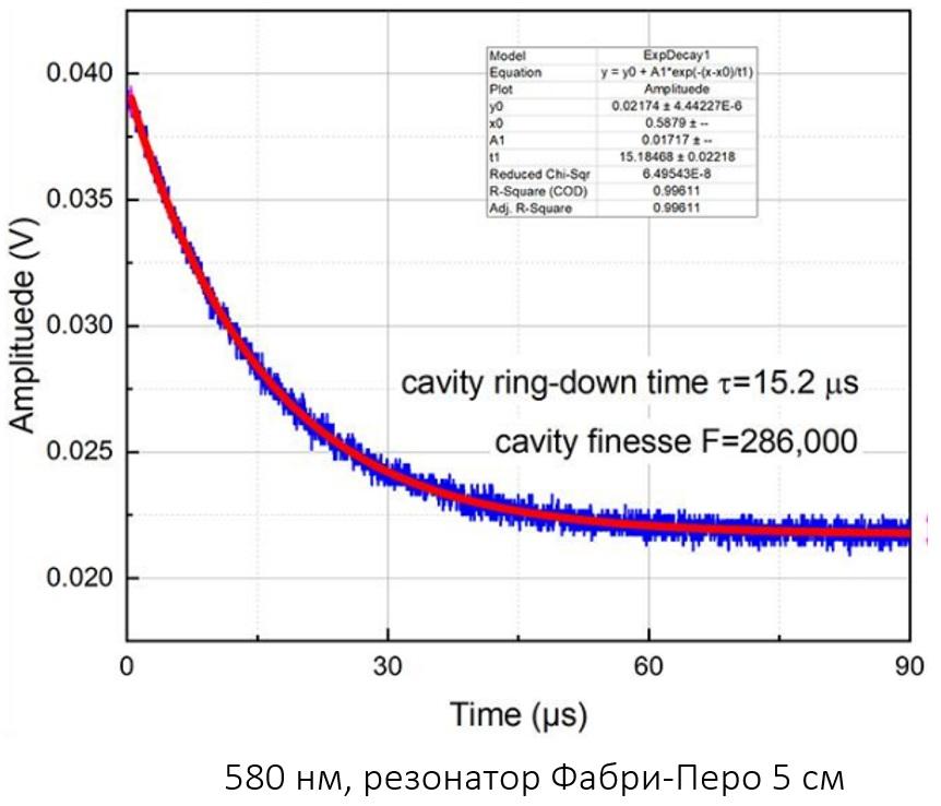 Сверхстабильный лазер на основе высокодобротного резонатора Фабри–Перо длиной 5 см. Система характеризуется узкой линией генерации ≤1 Гц и стабильностью, приближающейся к пределу теплового шума. Лазер работает в диапазоне длин волн от 480 до 2000 нм и поддерживает двухволновую генерацию.