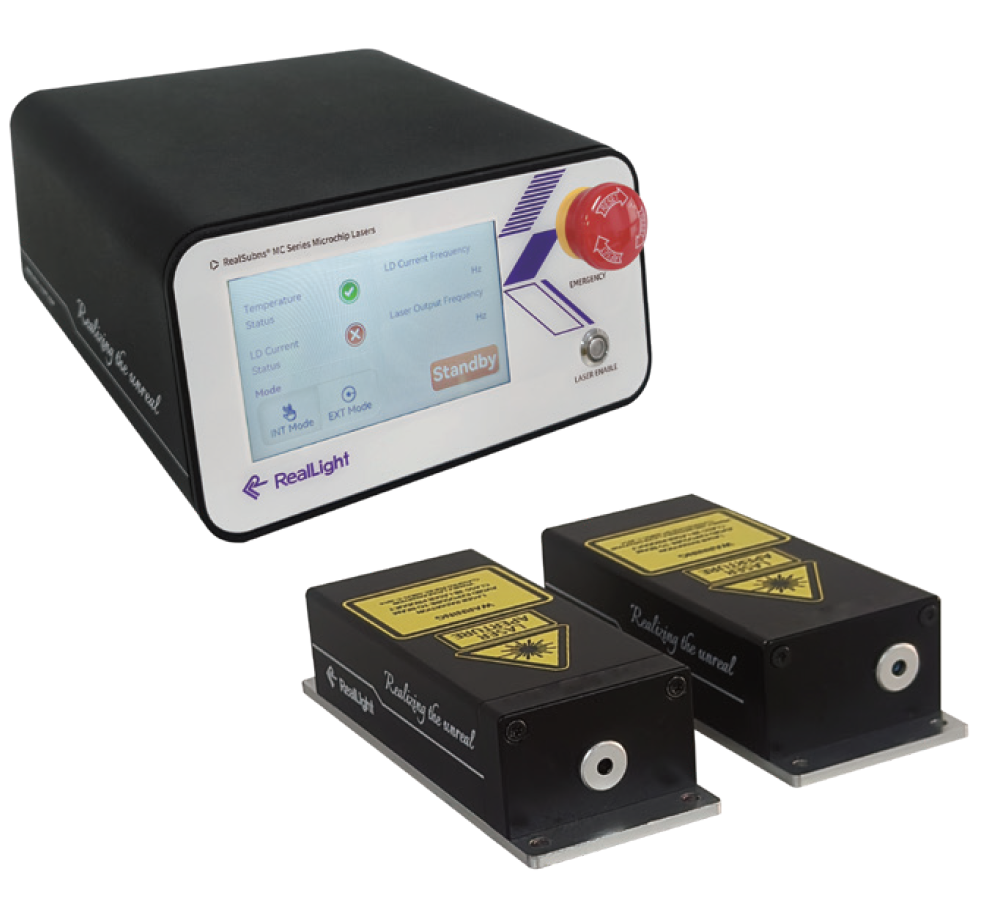 Лазерный источник модели MCD-266-0.1-5 производства RealLight представляет собой компактный микрочиповый твердотельный лазер с диодной накачкой и пассивной модуляцией добротности, предназначенный для генерации ультрафиолетового излучения с длиной волны 266 нм. Устройство характеризуется длительностью импульса 300 пс и максимальной энергией импульса 5 мкДж. При частоте следования импульсов 0,1 кГц обеспечивается средняя выходная мощность 0,5 мВт со стабильностью менее 3% в течение 8 часов. Оптические параметры лазера: профиль пучка соответствует TEM00, а угловая расходимость по уровню 1/e2 не превышает 8 мрад в горизонтальном и вертикальном направлениях.