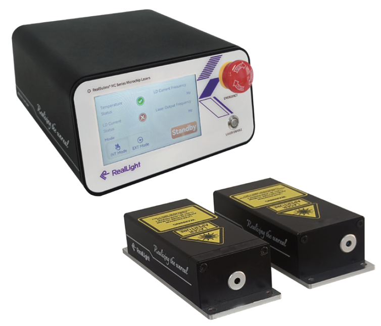 Компания RealLight выпускает серию MCА-532 - компактные микрочиповые твердотельные лазеры с пассивной модуляцией добротности и диодной накачкой. Устройства работают на длине волны 532 нм и генерируют импульсы длительностью 1,2 или 1,5 нс. Производитель предлагает четыре модели в данной серии: MCА-532-1-60, MCА-532-5-30, MCА-532-10-15 и MCА-532-20-10. При частоте следования импульсов, равной от 1 до 20 кГц, энергия импульса равна от 10 до 60 мкДж, а средняя мощность - от 60 до 200 мВт (в зависимости от модели). Лазеры обладают высокой стабильностью выходной мощности: показатель RMS за 8 часов не превышает 3%. Профиль пучка соответствует TEM00, а его расходимость по уровню 1/e2 составляет менее 6 мрад как в горизонтальном, так и в вертикальном направлениях. Лазеры оснащены интерфейсами управления RS-232 и USB, поддерживают внутренний и внешний триггер. Максимальное потребление энергии не превышает 45 Вт. Благодаря прочной и надёжной конструкции эти источники оптимально подходят для OEM‑применений в промышленной сфере. Среди ключевых областей использования - лазерная дальнометрия, рамановская спектроскопия, лазерная ионизационная масс-спектроскопия (LIMS), спектроскопия лазерного пробоя (LIBS), лазерно-индуцированная флуоресценция (LIF) и спектроскопия лазерно-индуцированной плазмы (LIPS).