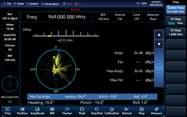 - Пеленгация источников помех и определение их координат на карте.
