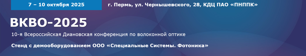 Приглашаем вас и ваших коллег посетить демозону компании «Специальные Системы. Фотоника» в рамках 10-й Всероссийской Диановской конференции по волоконной оптике «ВКВО-2025».